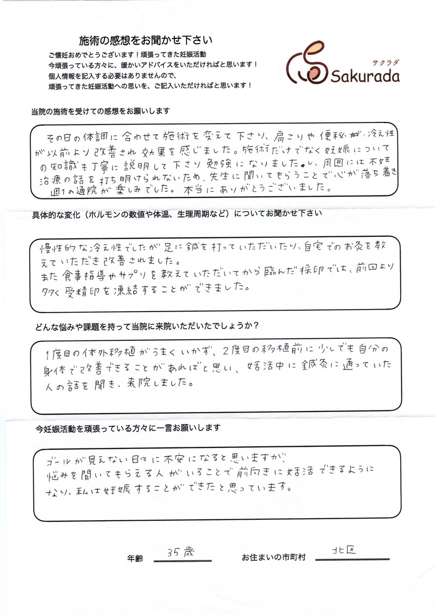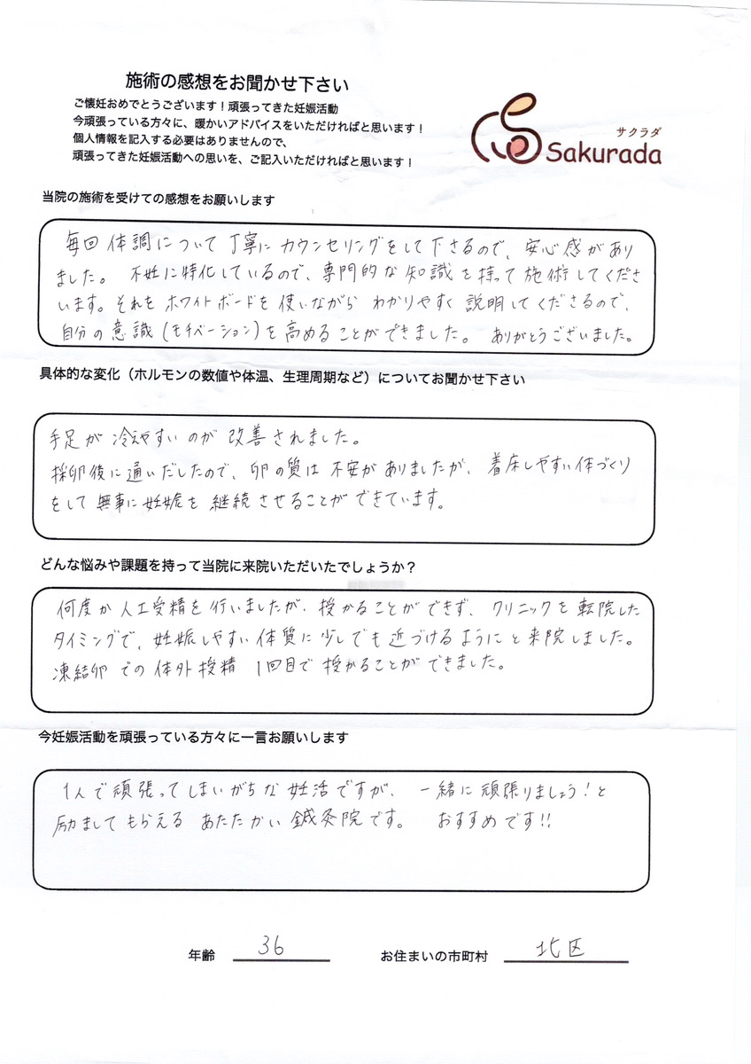 そしてご自身の体質改善、奥様の体質改善を一緒に頑張り、諦めず一歩一歩この状況を乗り越えて見事妊娠されました。